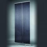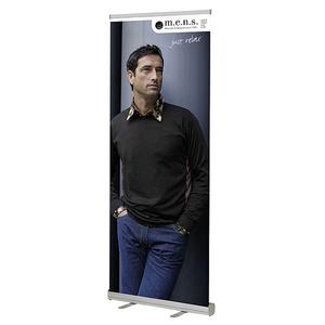RollUp banner je ekonomický prezentační bannerový systém. Je vhodný pro krátkodobé akce produkčního charakteru. Grafický panel se vlepuje na zaváděcí pás v kazetě a na horní hraně se svírá do hliníkového profilu. Šíře 100 cm, výška 200 cm. materiál hliník, barva stříbrná. Lze jednoduše poskládat do brašny (součást dodávky).